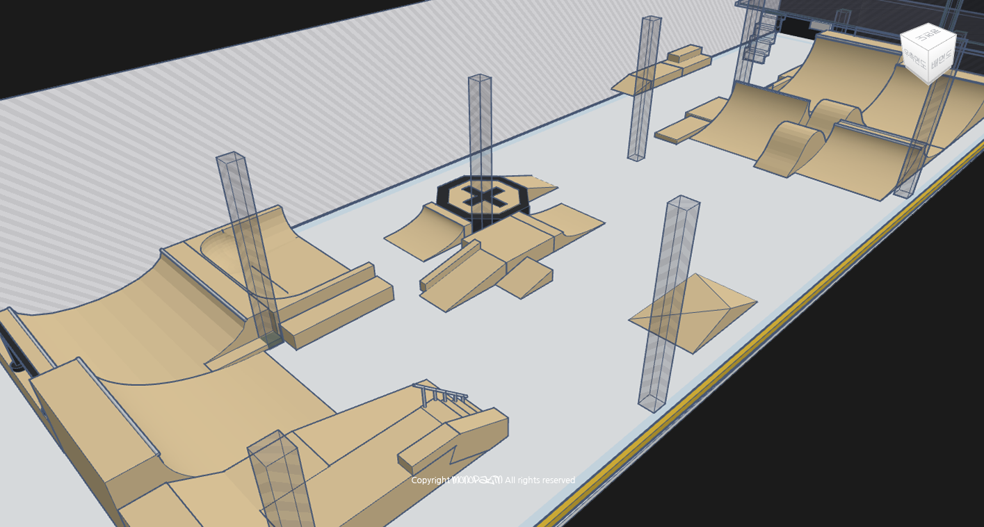 | 5. 대형 플랫폼이 대형 쿼터파이프와 스파인 사이로 이동되었습니다. |